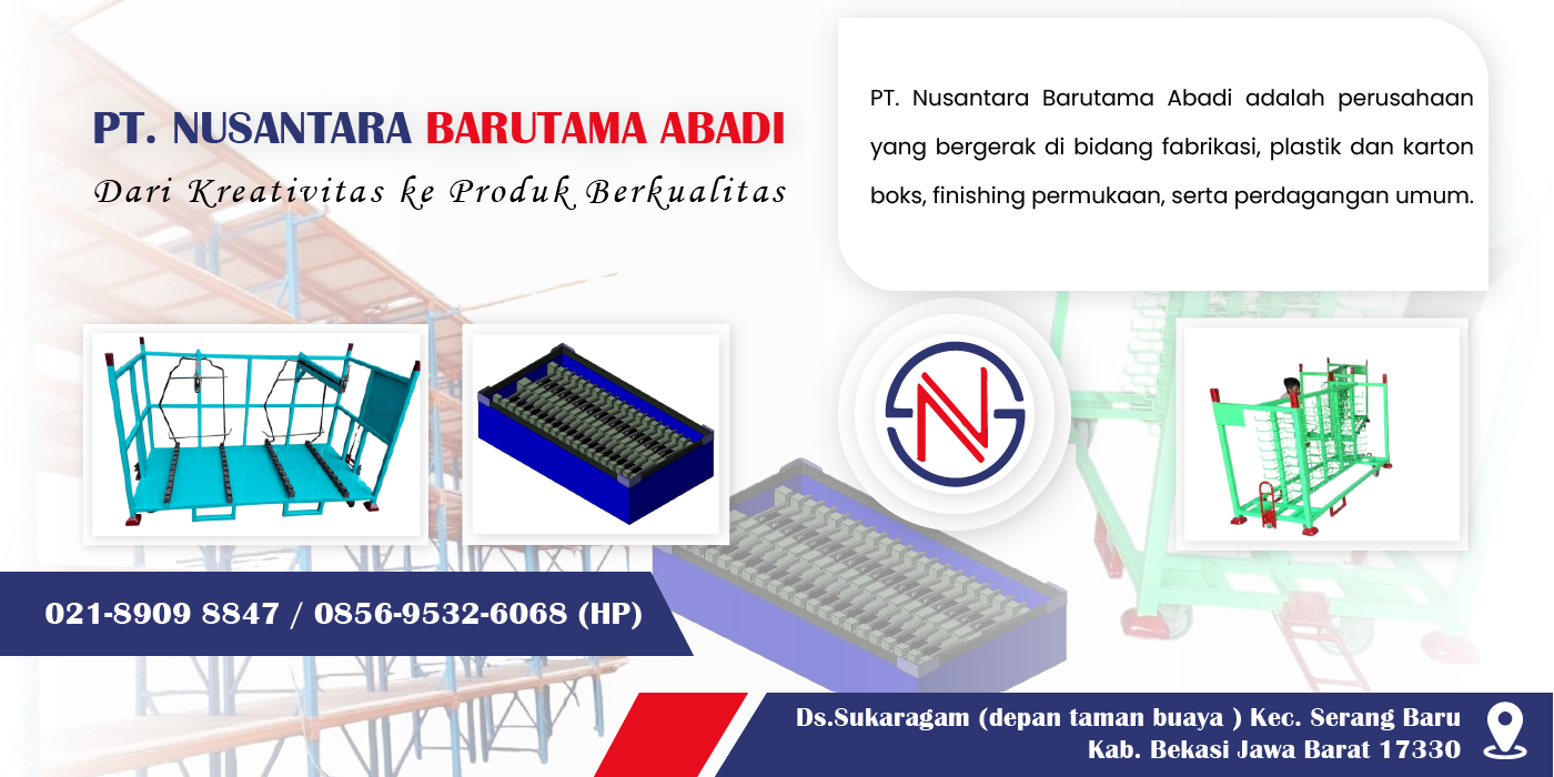 PT. Nusantara Barutama Abadi adalah perusahaan yang bergerak di bidang fabrikasi, plastik dan karton boks, finishing permukaan, serta perdagangan umum. Dengan pengalaman, teknologi canggih, dan tim profesional, kami berkomitmen menghadirkan produk dan layanan terbaik. Kami terus berinovasi untuk memenuhi kebutuhan pelanggan dan mendukung pertumbuhan industri.